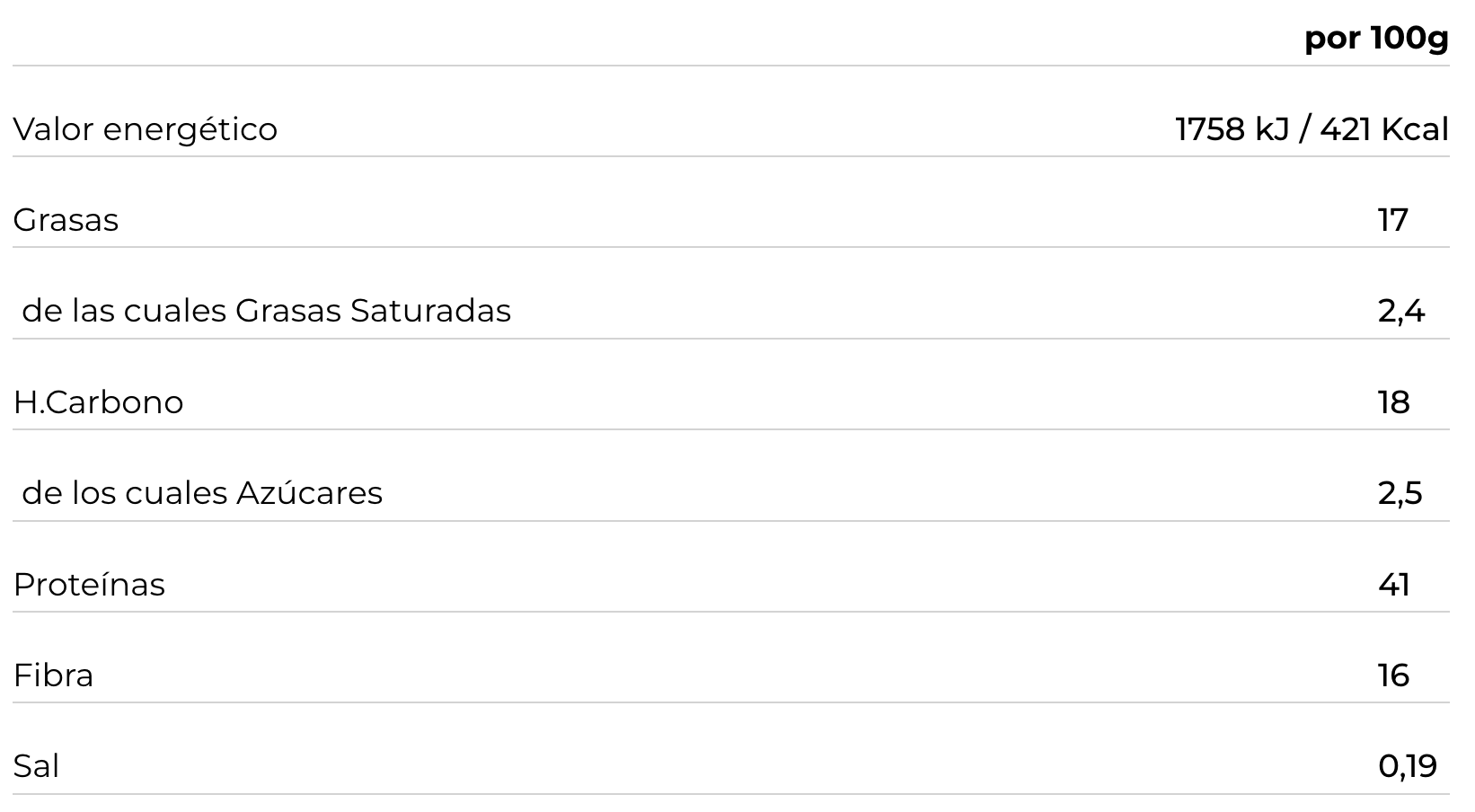 TABLA NUTRICIONAL