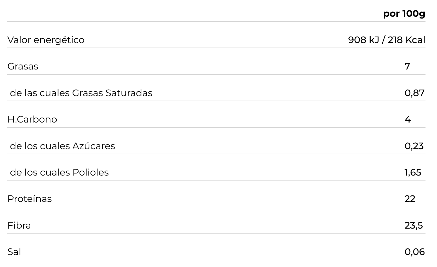 Con un 22% de proteína, bajo contenido en carbohidratos y rica en fibra, es ideal para cuidarte sin renunciar a nada.