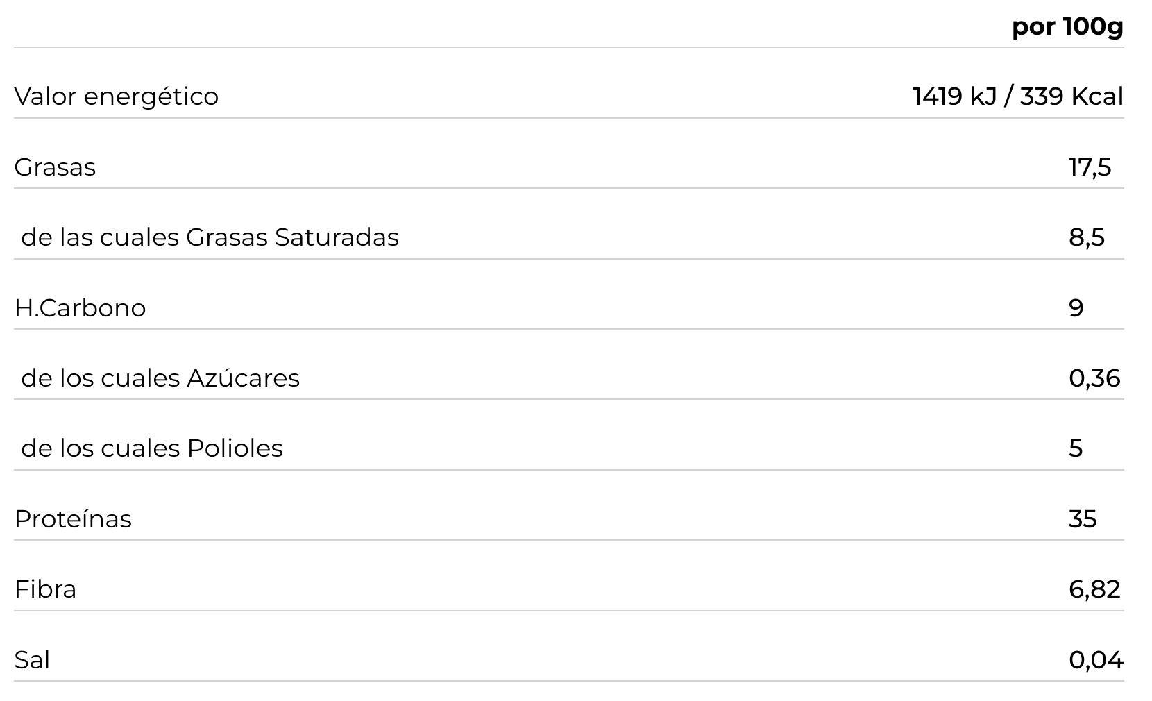 Este bizcochito remojado con ron y con pepitas de chocolate negro tiene un 35% de proteína, es sin azúcares añadidos y bajo en carbohidratos.
